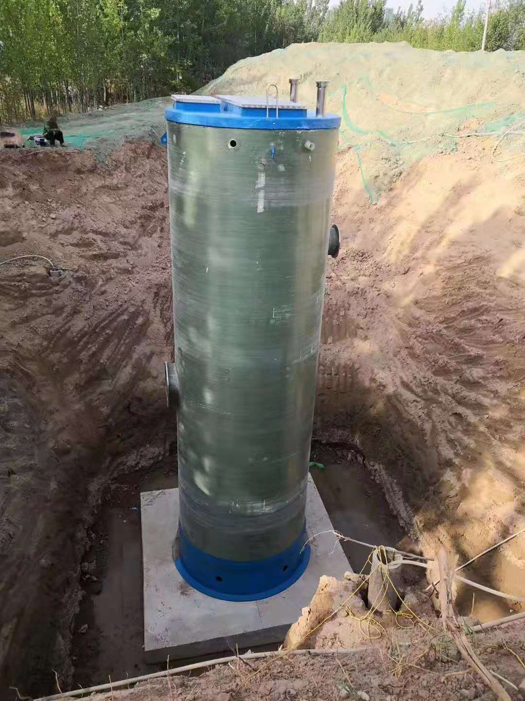 1、安裝筒體:清潔水泥基板表面,確保安裝面和預(yù)制泵站底部之間沒(méi)有泥土等雜物,然后用起重吊鉤吊起泵體,放在水泥基板上的地腳螺絲圓周中間。