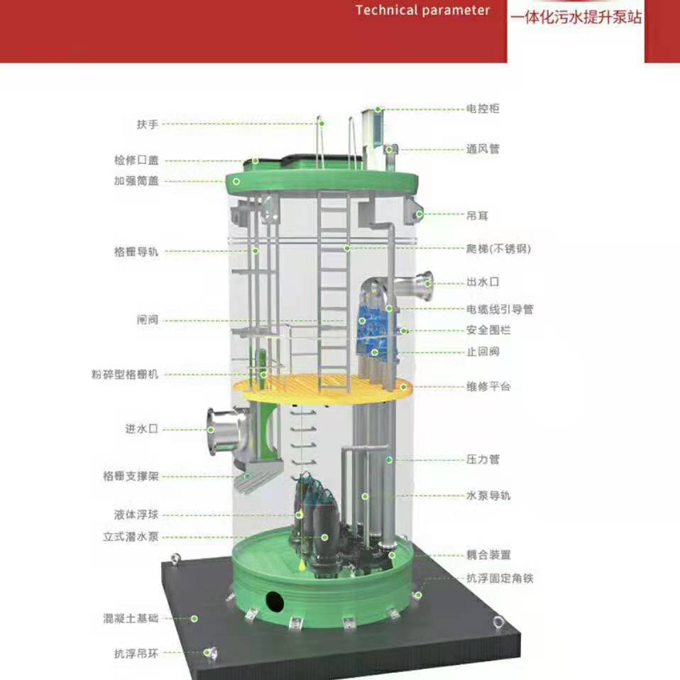 一體化的提升泵站,設置在水源附近和自來水廠向居民供水,利用增壓泵站的提升裝置,可以迅速穩(wěn)定地將水源運輸?shù)阶詠硭畯S和供給居民。避免了傳統(tǒng)供水設備、蓄水池成本高、土地占有多、供水不穩(wěn)定的問題。一體化污水泵站,污水流入泵站達到液面?zhèn)鞲悬c,泵站自動切斷污水,提高作業(yè)。將污水中的固體物、纖維物攪拌均勻,只能通過75mm直徑的微粒子,利用提升裝置加壓排出污水。從而實現(xiàn)管道污水排放流暢無堵塞,迅速運往污水處理廠。